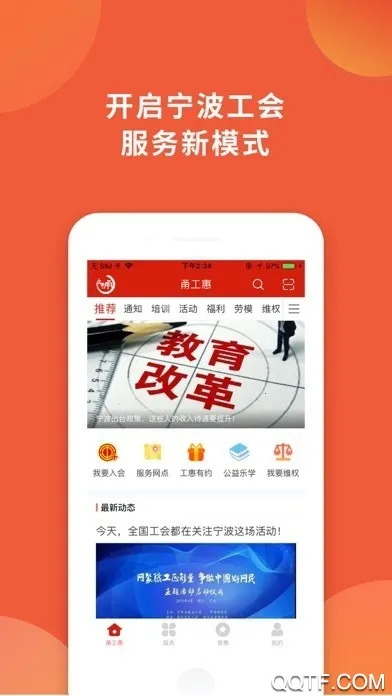 甬工惠是宁波市总工会推出的移动服务端,为职工提供了文体活动、教育培训、普惠服务、法律咨询、帮扶救助、新闻阅读、婚恋交友等实实在在的服务项目。通过网络开启宁波公会的新服务模式,方便又高效,告别繁琐的线下流程。进入服务中心,为你提供一站式的便捷服务,让所有需求尽在掌握之中。精心为你筛选出各种优质的普惠福利,及时推荐,做到真正的专属服务。全城商家随时在线选购商品,不论是美食还是休闲,只需轻点手指,一切尽在掌握。想要继续深造或者学习新知识?参与专业的培训项目,让自己更具竞争力。通过这个平台,你可以认识更多志同道合的朋友,分享本地的最新信息,畅快交流。需要上门维修服务?简单在线寻找师傅,轻松搞定问题。