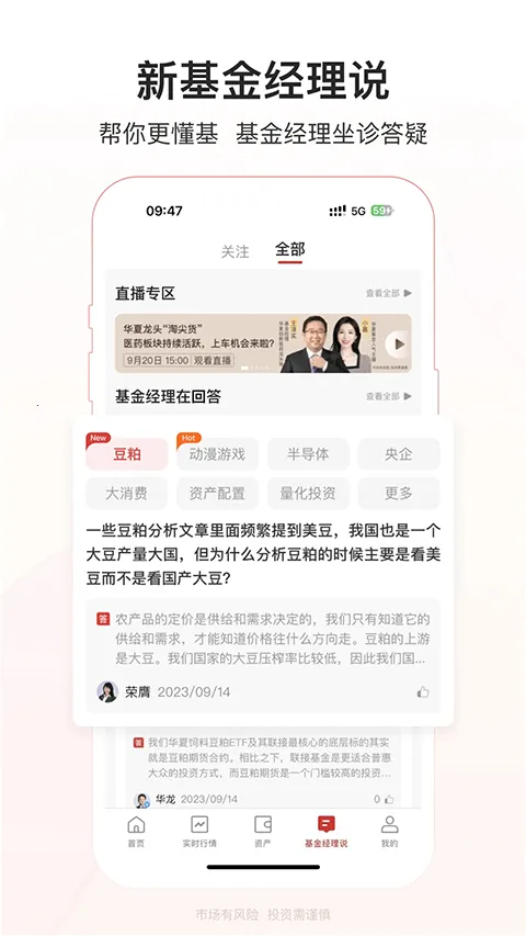 3. 功能全面:可实时查询账户余额、损益分析、历史分红、交易明细等;便捷查询华夏基金所有产品每日净值涨跌幅及历史净值走势;还能查询沪深两市股票信息以及国内全市场基金净值信息。