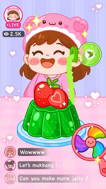 这是一款独特的游戏,能让玩家化身为虚拟主播,体验真实的ASMR直播与吃播乐趣。游戏里有超多有趣的美食制作项目,比如DIY烹饪糖葫芦、果冻,打造完美午餐盒,将拉面与汉堡精彩结合,制作活冰淇淋等。还能领养可爱宠物增添趣味,享受高质量ASMR声音。通过转动转盘和完成任务解锁独家食材与秘密配方,还有免费奖励。内置变速功能且无广告干扰,能自由创造独特美食,快来加入这个美味又放松的世界,开启属于自己的吃播明星之路吧。