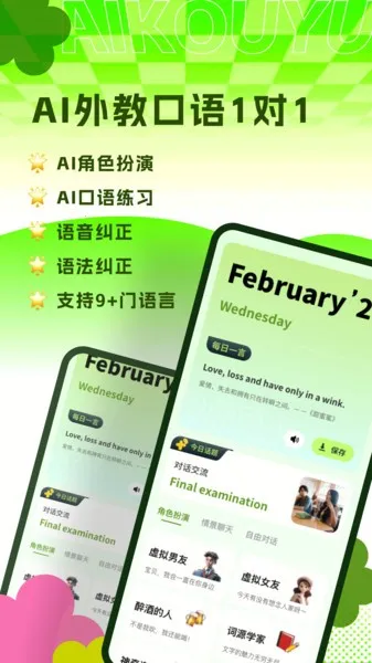 1. 随时练习超便捷:24小时随时随地都能使用,不受时间地点限制。无论是清晨醒来,还是忙碌一天后的闲暇时光,都能开启口语练习,充分利用碎片化时间提升口语能力。