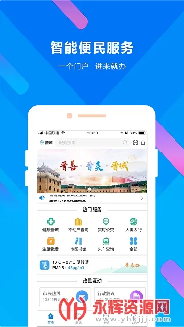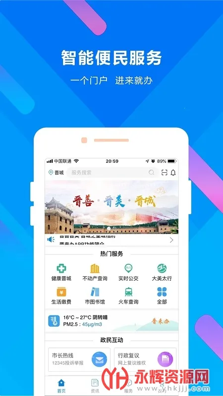 晋来办(晋城便民服务)是晋城市大数据应用局发行的综合智能便民软件。以办事不找关系、畅享智能服务为目标,整合各类服务,涵盖政务、交通、生活等多领域,让数据多跑路,百姓少跑腿,实现一号申请、一次登录、一个门户办事。