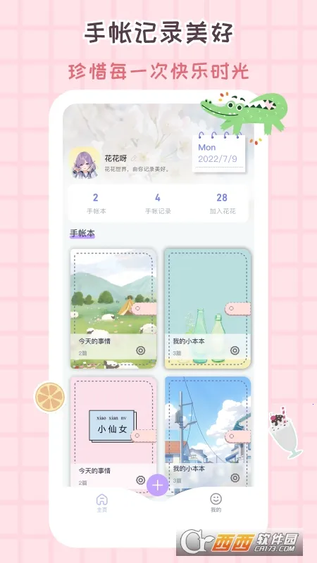 花花手帐是杭州鸿影科图研发的手账软件,操作简单,能diy手账或用模板制作。有独特卡通角色、免费无容量限制、云同步等特色。具备日记、记账、日历等功能,支持多方式密码保护和同步备份。