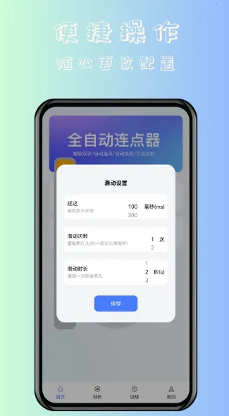 1. 操作简单高效:只要输入网址就能自动点击,支持多种场景,如游戏挂机、抢票抢红包、应用测试等,最高每秒点击200次,让你告别手指抽筋。