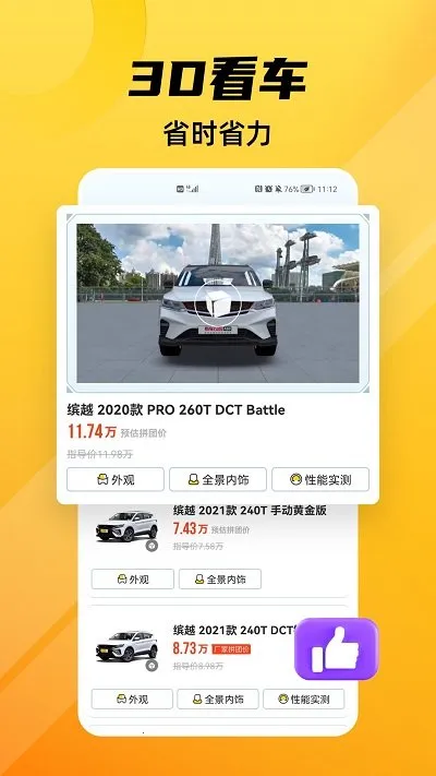 2. 提供3D看车服务,线下超1000家自营点,家门口就能看车提车。