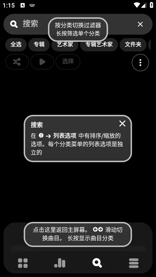 4. 便捷操作体验:主界面操作方便,媒体库可排序缩放,均衡器能微调,搜索功能强大,设置页面可进行全面自定义,还有定时关机、标签编辑器、无缝播放等实用功能。