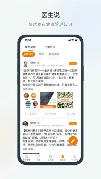 2. 可随时发布健康管理知识给患者查看,还能自行管理已发布内容。