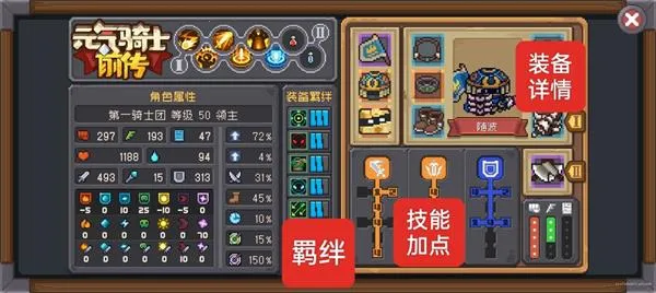 可以查看技能,装备,羁绊,人物面板等等