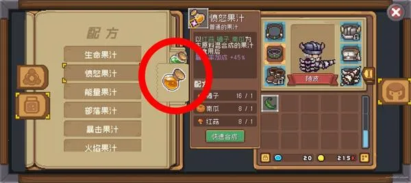 然后在左侧选择想要的增益果汁并制作。