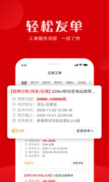 1. 工单信息详细:能知道所有服务内容,包括项目地址、时间和要求等,便于高效对接服务,精准选择承接,接单更符合需求。