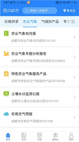 四川e农APP基于移动互联网,结合GIS技术精准定位,为种植大户提供特色作物农业气象服务等。有农业气象、天气预报等功能,资讯丰富,能助力科学务农,还提供多种农业服务,是农业一体化服务平台。