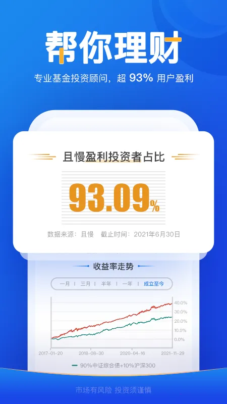 且慢是一款理财投资软件,能帮您解决理财难题。它有专业投研团队,为您严选理财产品,制定合理投资策略,解决不知买啥的问题。功能超实用,每日估值提醒,让您找到低估指数基金;还有硬核数据辅助决策,科学又理性。能自建组合分析成分,专属投资顾问为您定制方案。一键跟投超方便,跟随投资达人轻松买卖调仓。金融资讯海量,可自由查看。智能筛选能按条件排除不合需求的基金。在线就能买基金,还有便捷提醒,重要通知不错过。在这里,您能省心打理资产,实现资产保值增值,远离焦虑,全情生活,是您理财投资的好帮手,赶紧下载体验吧!