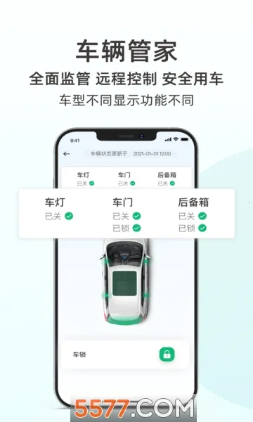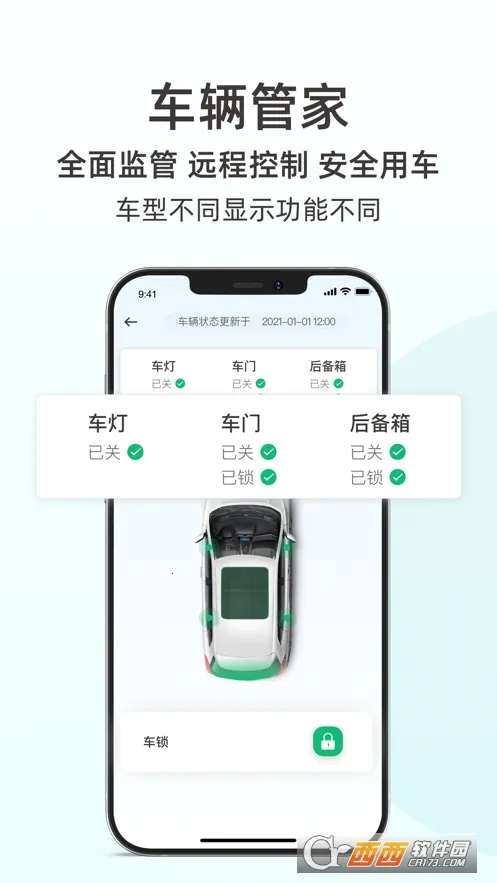 2. 安心用车:显示车辆车门、车灯、行李箱等开闭状态,全方位保障您的用车安全。