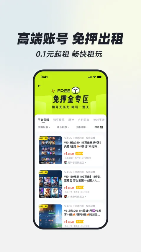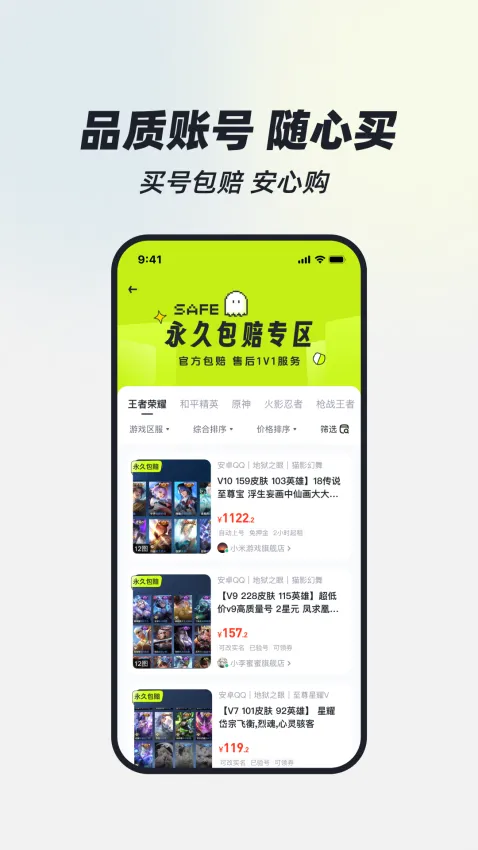 1. 丰富的游戏选择:涵盖端游手游等多个热门游戏,账号种类丰富,包含王者荣耀、和平精英、英雄联盟等主流游戏的高段位高皮肤账号,满足不同玩家需求。