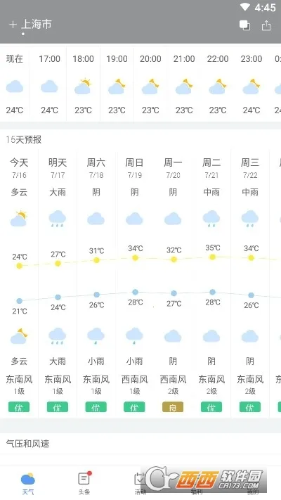 定位精准,信息全面:无论身处何地,都能自动定位并获取准确的本地天气信息,涵盖全球200多个国家、80多万个城市,天气数据实时更新,支持显示每个小时的天气变化,更有长达15天的天气预报服务。