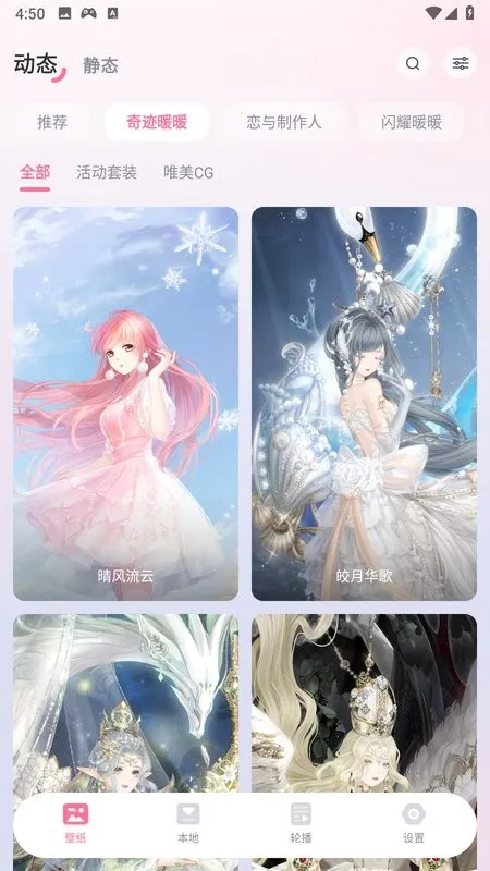2. 分类详细,不管是旗下多款人气游戏的高清角色壁纸,如恋与深空、闪耀暖暖等,还是其他风格壁纸都有。