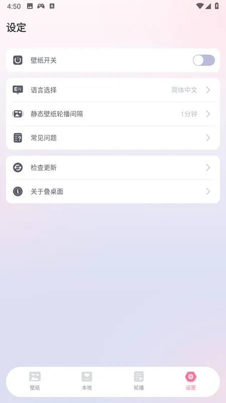 叠桌面壁纸软件超棒!它有海量壁纸资源,不管是动态还是静态,各种风格类型都有,像风景、动漫、萌宠等,能满足不同人手机桌面美化需求。分类详细,更新速度快,还会根据喜好智能精准推荐。你能上传原创壁纸,参与活动,和全球设计师互动。内置收藏夹与历史记录,方便回溯喜欢的壁纸,一键分享超便捷。它涵盖多种壁纸类别,支持批量下载。有轮播功能,打开左下角开关就能轮换播放动态壁纸,还能设置顺序。常见问题解答贴心,比如可解决动态壁纸轮播、桌面闪烁等问题。安装包特色满满,展现多种高精度美妙壁纸,内置海量高质量游戏角色壁纸。设置锁屏壁纸也不难,下载后就能自由设置。总之,叠桌面壁纸是手机桌面美化的好帮手,快来试试吧!