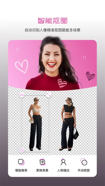 2. 智能抠图超便捷:可自动识别人像智能精准抠图,还能通过人工智能技术实现物品全自动抠图换背景,操作简单又高效,节省用户时间和精力。