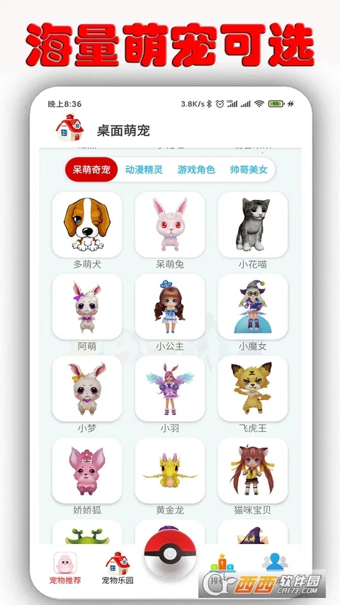 拥有丰富多样的宠物选择,内置皮卡丘、史迪仔、哆啦A梦等30多种宠物,包含各种明星游戏角色等,应有尽有,让你能挑选到自己心仪的萌宠。