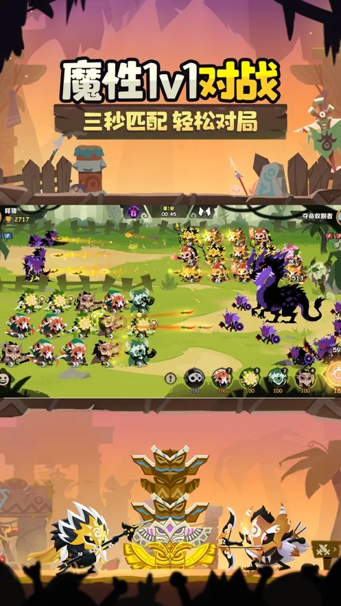 公平竞技的PVP模式:采用真人即时PVP形式,双方同时面对同样敌人,看谁能活到最后。战斗前编制队伍,战斗中合成相同勇士触发特殊技能,充满策略与挑战。