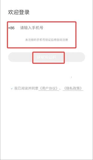 4、输入注册手机号码并获取短信验证码,填写后即可完成登录操作。