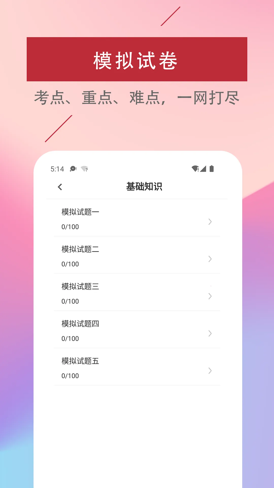 2. 提供历年真题练习,让用户随时接触到最新的考试真题,熟悉考试题型与难度。
