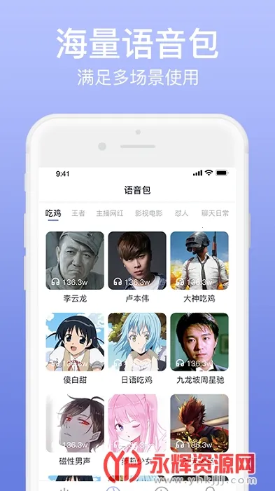 1. 海量语音包任你选,声优、萝莉、大叔、动漫等多种类型应有尽有,可用于游戏、聊天、录音等各种场景。