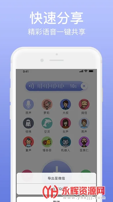 2. 能自由录制语音制作语音包,还可选择喜欢的声音恶搞好友、变声唱歌并在社区展示。