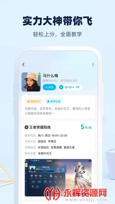 2. 海量游戏大神云集,支持游戏陪练陪玩一对一教学等服务,大神们专业指导,助你快速上分。