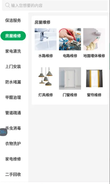 4. 一站式家装解决方案:用户可通过手机轻松浏览并选择各类服务,覆盖装修前中后期的多样化需求,提供从量房设计到水电改造再到墙面施工、全屋整装、家具安装、局部维修等一站式家装服务。