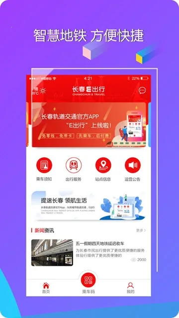 长春E出行2026最新版本是长春市轨道交通集团开发的出行软件,可扫码乘车、购取票,提供线路等查询。支持多城市互通,有公交查询、一卡通充值等功能,操作简单,界面清新,持续更新优化。