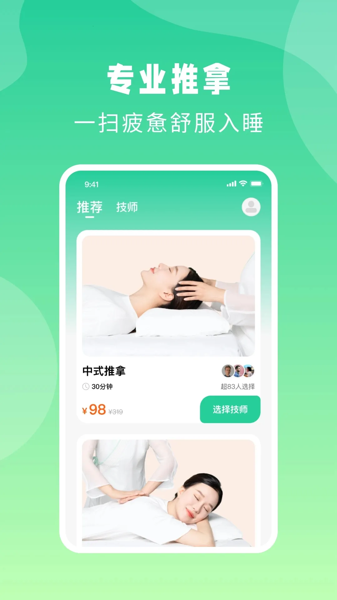1. 医师级团队:按摩师精通中医肌肉及推拿学,服务专业有效,在家就能享受专业养生。
