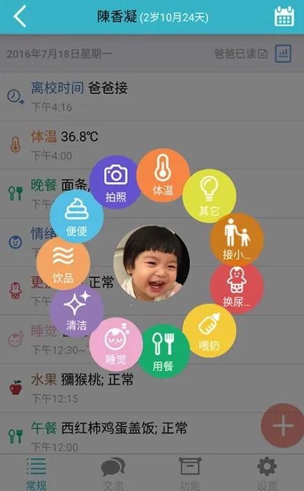 2. 轻松了解宝宝日常起居教学情况,还能记录点滴,以图文方式展现,一目了然。