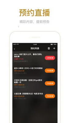 特色预告:能提前发布直播预告,享受做焦点的感觉,还可无缝切换录制与本地上传,解决相关顾虑。