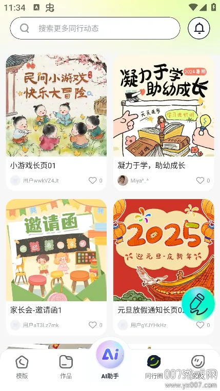 便捷工具:具备多种设计模板,如海报环创H5长页等,还有AI辅助写作功能,可快速生成文案,操作简单,能有效减轻幼师工作负担,提升教学效率。
