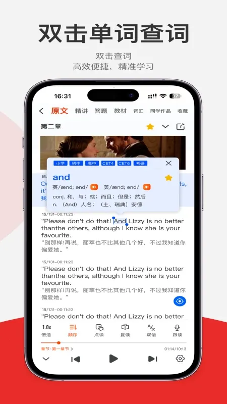 全场景学习支持:从输入到输出全流程覆盖,比如听读名著积累词汇、跟读训练口语、仿写段落提升写作。适配碎片化时间与系统化学习。
