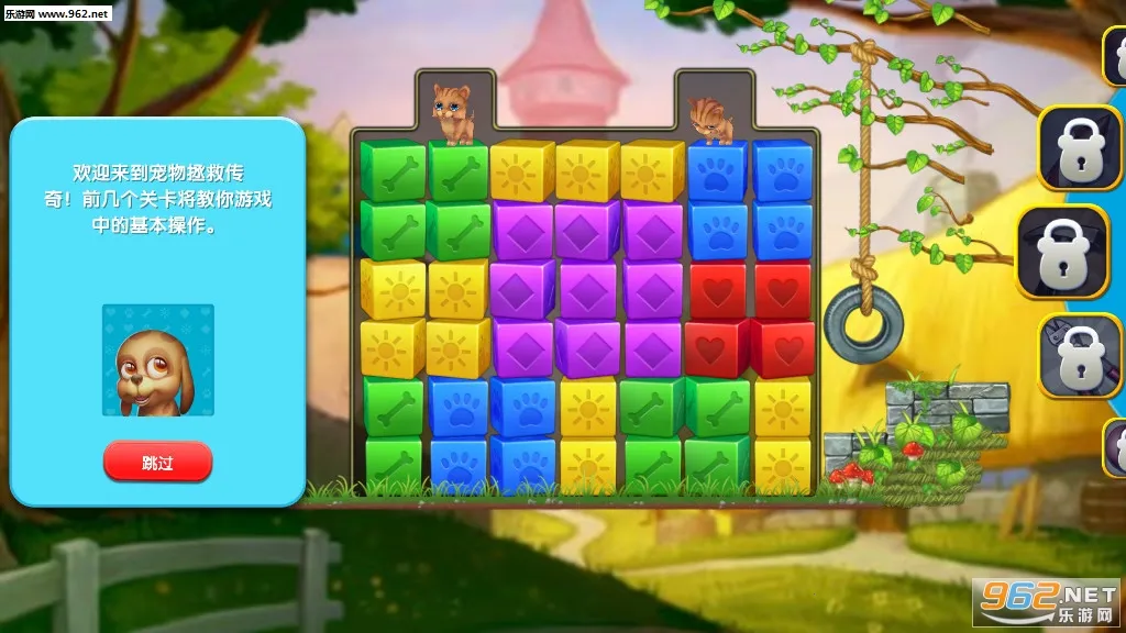 3. 独特设定添趣味:打造专属宠物城佩托邦,救宠物建城市,还有收集关卡红方块赚取零食培养宠物、每周开启三消任务等设定,带来持续新鲜感,增添游戏趣味与探索感。