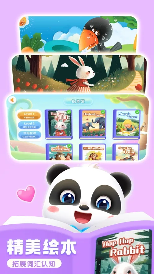 3. 丰富资源:提供标准多国童声发音和丰富反馈音效,还有精选的60本启蒙绘本、750集启蒙动画等,全面拓展词汇量。
