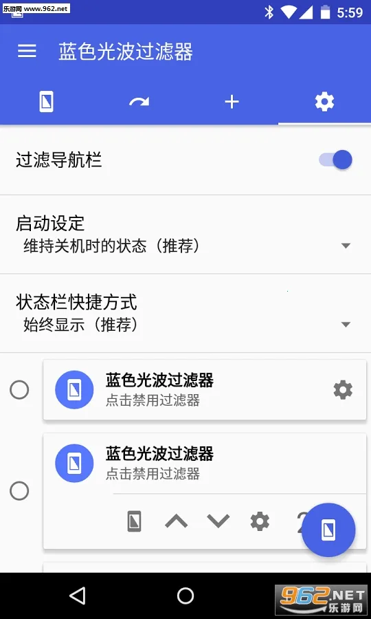 快捷操作控制:状态栏常驻悬浮控制条,支持亮度与过滤强度快速调节。通知栏添加开关按钮,支持开机自启动功能,操作便捷。