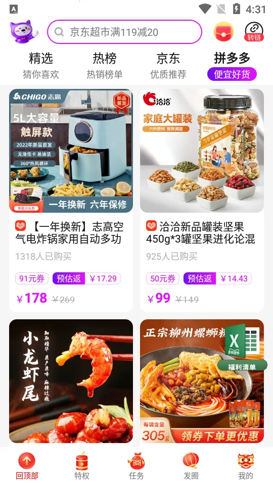 1. 亿万优惠:汇集全网亿万优惠券,每日精推数万款优质商品,券后1-3折起,能让您低价买好货,真正实现让生活更优惠。