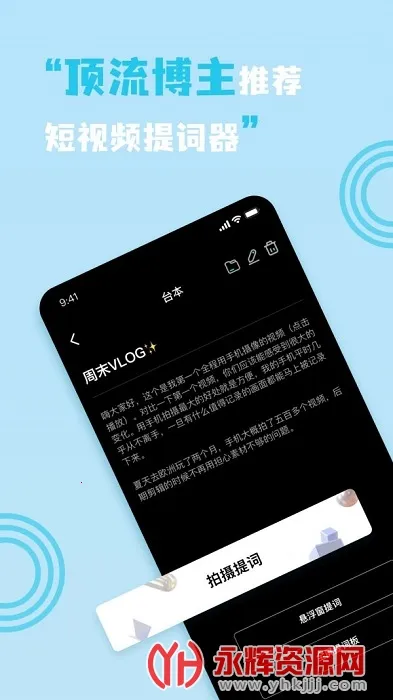 它的特色是在线编辑台词、悬浮提醒,让拍摄更省心,还支持语音识别悬浮提词等功能。适用于短视频、视频简历、演说、播音主持等多种场景,连顶流博主都推荐呢。而且它还会不断更新优化,提升用户体验和稳定性,真的是拍摄短视频的得力助手。