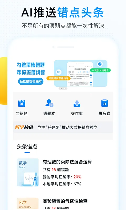 它的安卓版功能超丰富,支持作业智能报告分析、错题本练习、交作业等。能通过大数据管理学生作业,老师可建班级管理,还能线上配制答题卡,学生作业提交后能立马批改纠正。学生可以自选个性作业、拍照勾错。总之,有了它,学习更省心,家长能更好监督,老师能更了解学生,助力学习进步。现在更新到v4.0.5 ,还添加了试卷重组功能呢,快来下载体验吧!