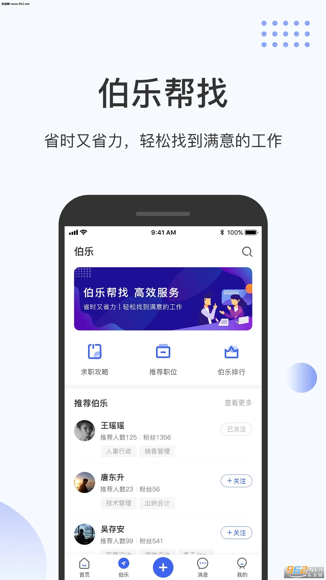 伯乐圈是一款很有特色的猎头服务 APP。它能让人才与工作高效链接,求职者可通过伯乐精准推荐找到心仪工作,还能免费成为伯乐推荐人才赚佣金。这里有海量丰富的招聘信息,不同专业用户都能找到适合自己的岗位。其智能匹配职位高效推荐,省时省力。面试流程清晰可在线观看,还能方便拓展人脉,与其他求职者交流分享。操作简单,能直接和企业 HR 聊天,支持智能搜索筛选职位。而且通过认证的企业免费发布职位,还有效果付费模式,总体来说是个不错的找工作平台。