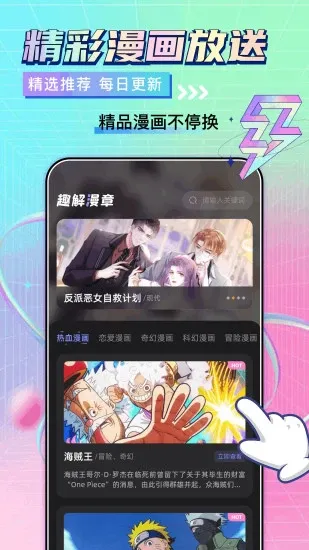 漫天台漫画app免费提供丰富正版漫画资源,类型涵盖热门网络、日漫、韩漫等。高清画质无广告,加载快。有多种阅读模式,能个性化推荐,支持多设备跨平台阅读,还可收藏下载、交流分享,分类精准搜索方便找漫画。