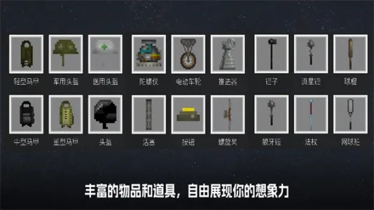 丰富道具与高自由度:拥有多达十种不同道具,武器载具等皆可随心所欲使用和创造,能在多种地图探索,提供丰富自由度,让玩家尽情展现天马行空的想象力。