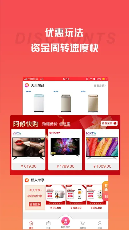 1. 与众多品牌合作,业务覆盖广,为全国中小家电商户提供家电在线零售批发服务。