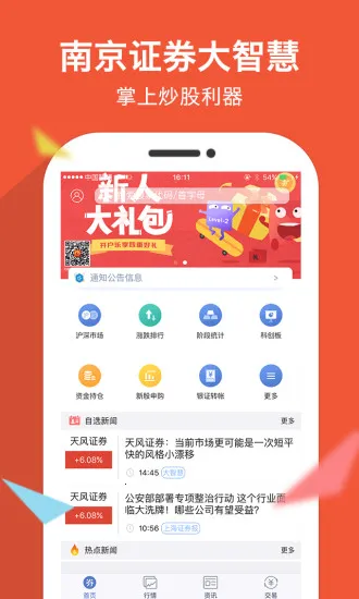 南京证券大智慧手机版是一款超棒的金融理财软件。它能帮您了解证券相关信息,掌握最新市场行情。支持委托下单、银行转账、分时行情、新股申购等多种功能。界面简洁,操作简单。集行情、普通股票交易、融资融券交易和最新资讯于一体,功能超齐全,业务操作方便快捷。采用业内领先三线接入方式,运行速度快又稳。精心设计的界面符合操作习惯,节省流量。丰富分时图界面展示更多盘面信息,提供全面动态行情分析和盘中实时资讯。还提供多种来源金融数据,支持沪深股票、期货、基金、外汇、外盘、港股等。若您遇到南京证券大智慧手机版打不开的情况,别着急。它可能因多种原因出现问题,比如网络故障、软件版本过低等。您可检查网络,更新软件版本,或者联系客服解决。有了它,投资交易更轻松,随时随地把握先机,快来下载体验吧。