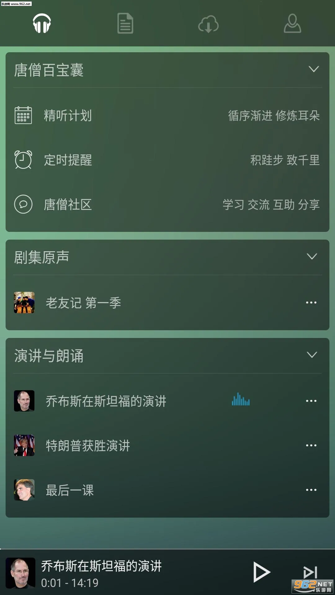 唐僧英语2.0.10是学英语练听力的app,有大量电影美剧等听力材料,同步中英字幕,可自由切换。能创建学习计划,与他人交流,还有生词本、定时停播等功能,助用户提升英语水平。