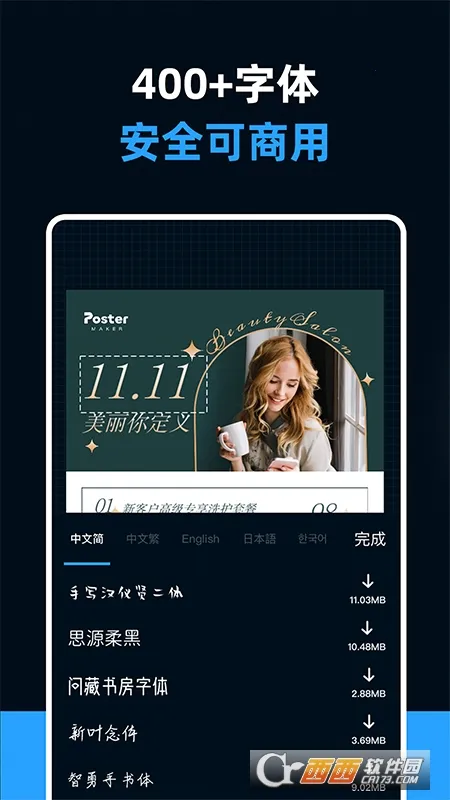 海报制作大师是一款超棒的海报制作软件。它功能强大,能轻松解决你制作海报的难题。这里有超多现成模板,从专业设计师制作的模版中挑选使用,节省时间。能往照片上轻松添加文字,更改字体、大小、颜色、间距和位置,所有字体还可商用,无版权烦恼。可从设备相册上传图片,调整位置、圆角、透明度、旋转角度等,让照片更贴合整体设计。操作简单易懂,一键生成海报。完成后点击右上角蓝色下载按钮,就能直接保存到设备。还能将超高清图片发给打印店,告知制作物料名称,轻松完成印刷海报、易拉宝、展架等物料设计制作。无论是店铺、企业还是班级活动等场合的海报需求,它都能满足,设计不求人,轻松搞定平面设计,快来试试吧!