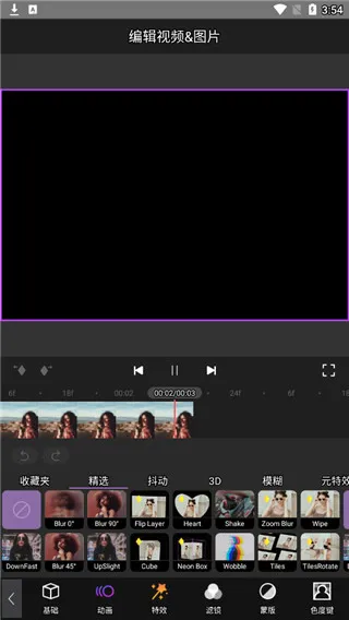 2、可以选择视频和图片,也可以从资源库选择合适的开场动画,因为小编大家提供的是解锁版,所以所有的VIP的资源都是可以使用的,大家可以放心的去使用 。