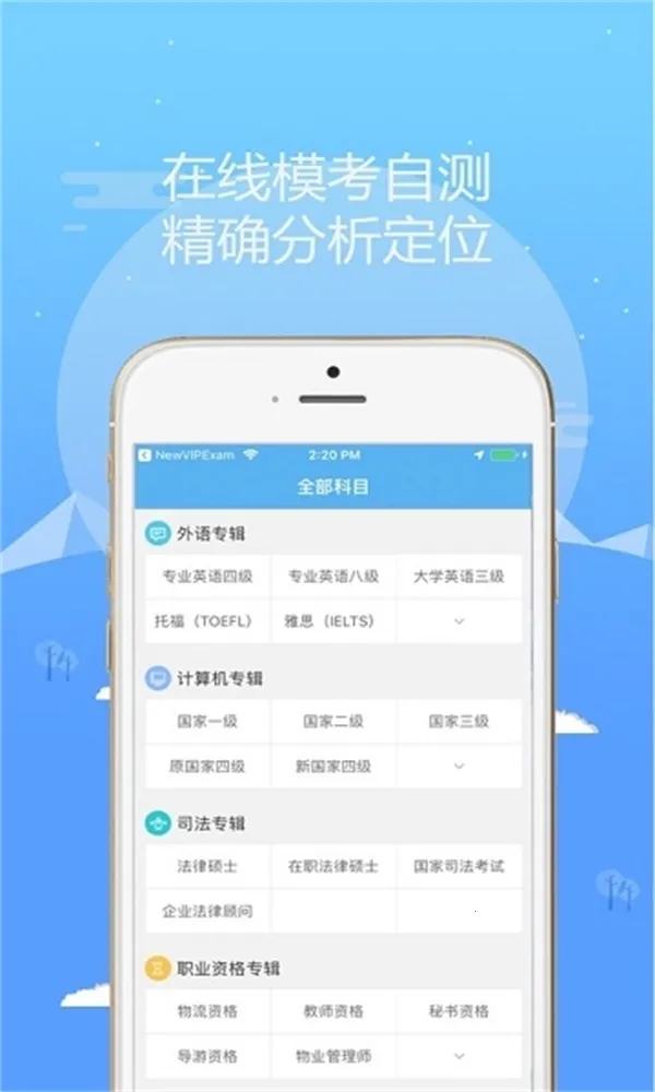 覆盖领域广,涵盖英语、计算机、考研等多领域,超2100个科目,12大专辑不管何种考试需求都能满足。